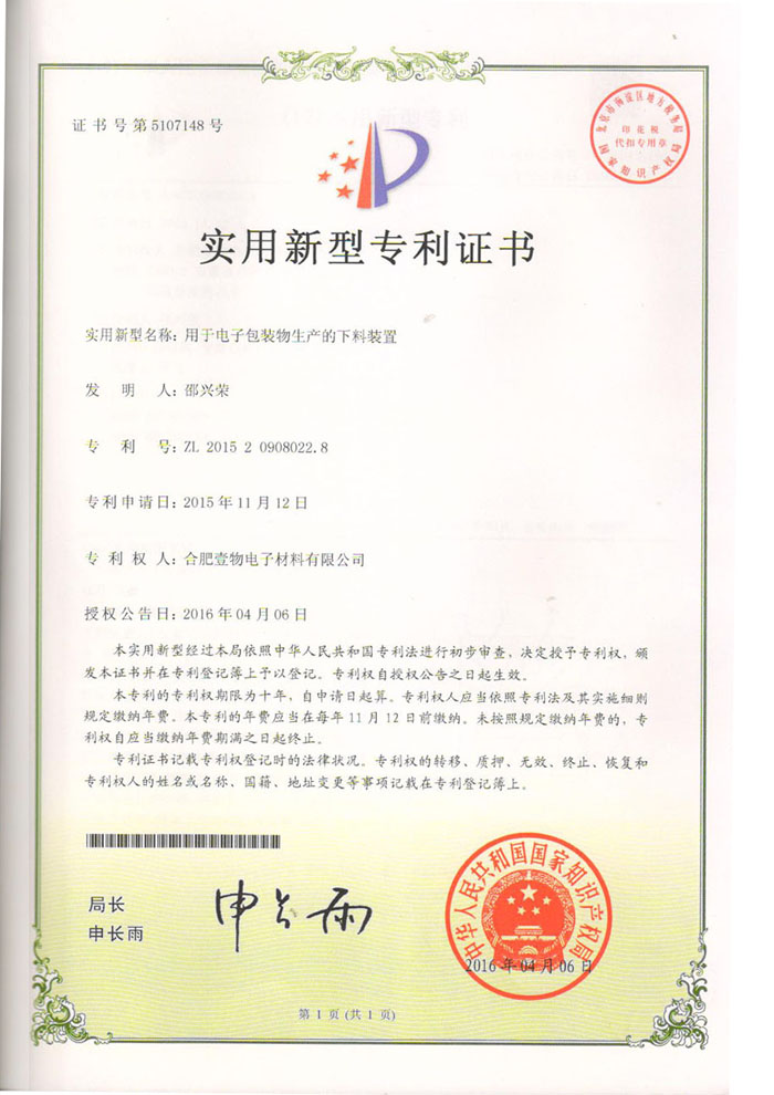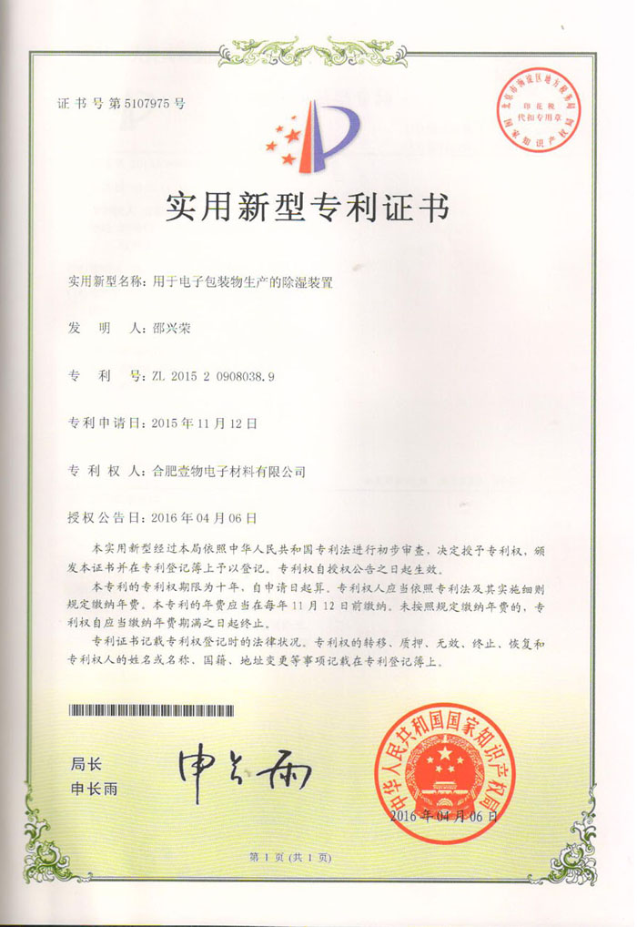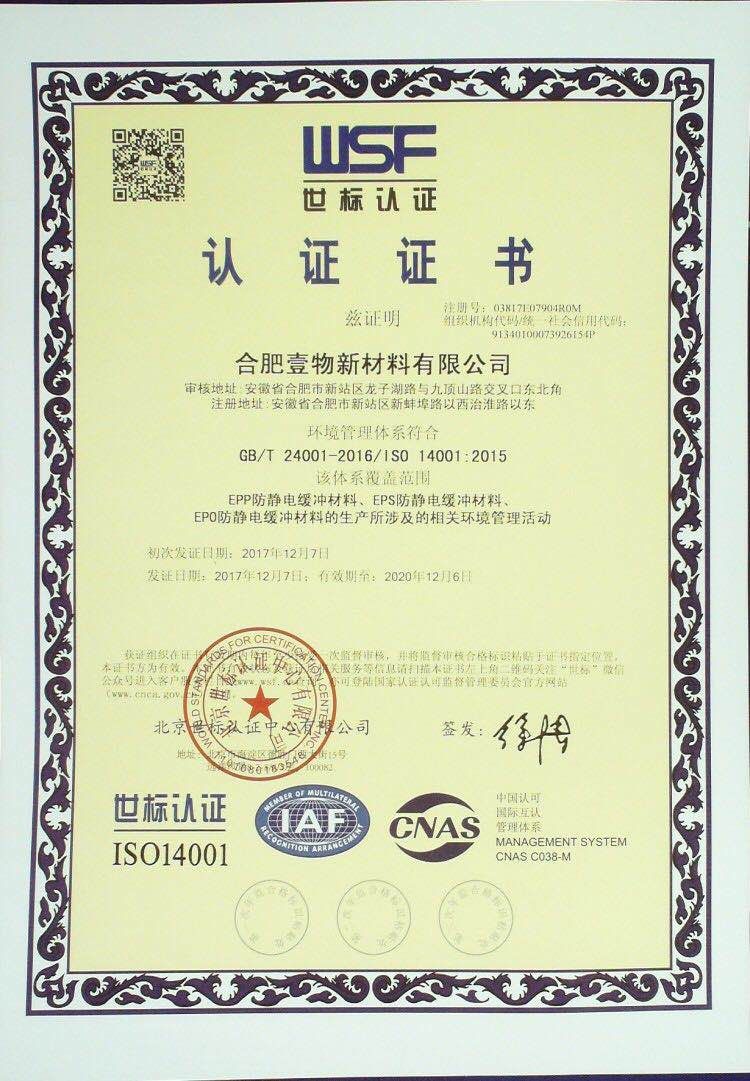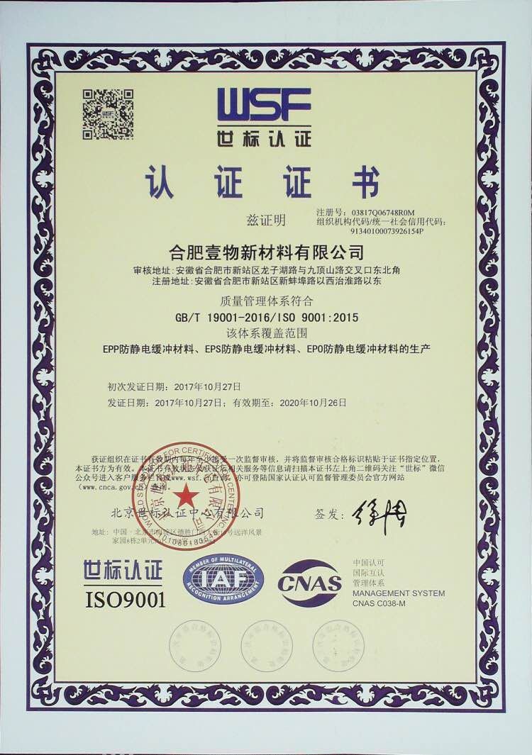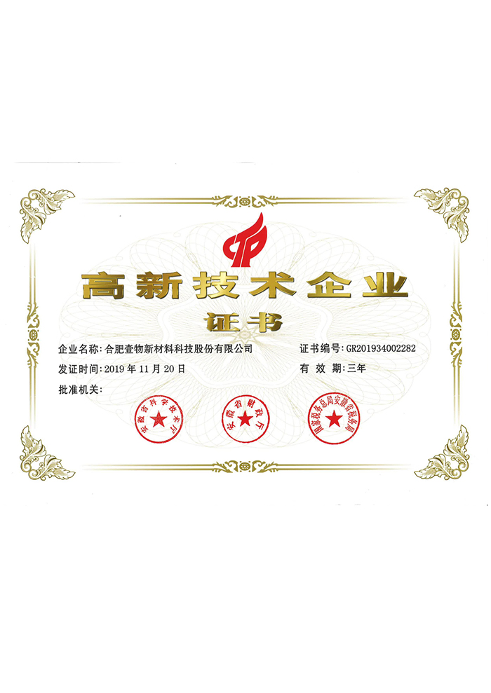 2019年合肥壹物高企證書