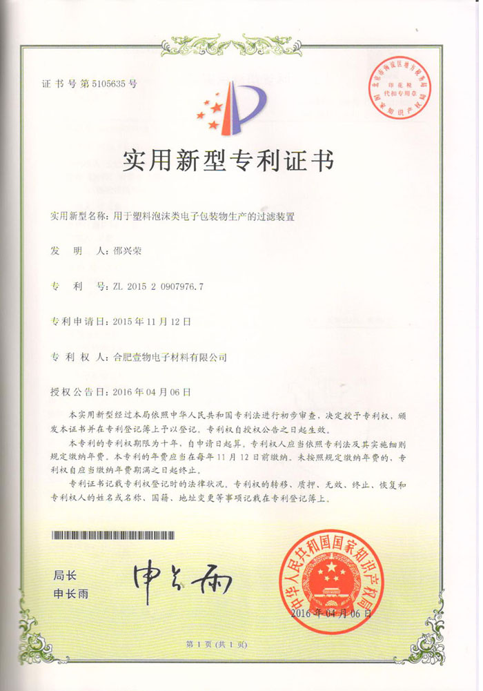 用于塑料泡沫類電子包裝物生產(chǎn)的過濾裝置